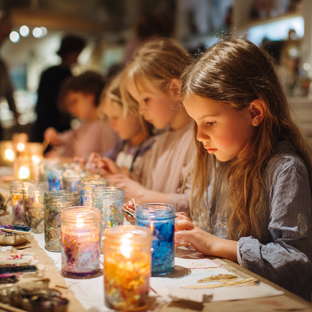 In this adventurous workshop, children will create their own captivating space candles! Using safe, kid-friendly materials, young crafters will learn to layer colorful wax, add glitter and decorations, and embed tiny space-themed charms into their candles. Each participant will: